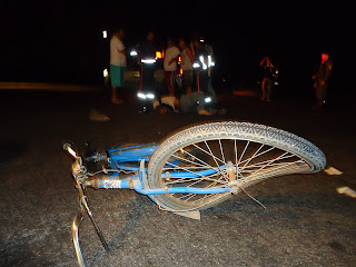 foi colhido por um carro não identificado, depois de atropelar o ciclista